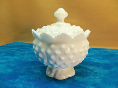 Vintage Fenton Hobnail Milk Glass Covered Jam Jar