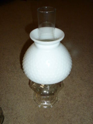 Title (ebay affiliate link): Antique Oil Light Table Lamp Vintage Clear Glass Base Milk Gla
