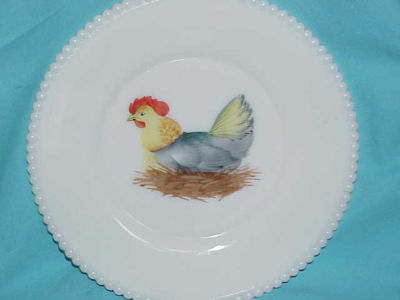 Title (ebay affiliate link): Westmoreland Glass ~ HAND PAINTED BEADED MILK GLASS ~ CHICKEN PLATE