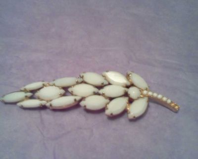 Title (ebay affiliate link): Vintage Juliana Style Milkglass Prong Set Navette Stone Leaf Brooch
