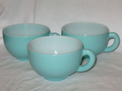 Title (ebay affiliate link): SET OF 3 VINTAGE HAZEL ATLAS PASTEL TURQUOISE BLUE MILK GLASS COFFEE CUPS