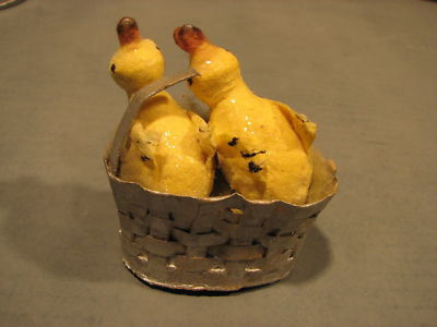 Vintage Spun Cotton and Paper Ducks in a Basket