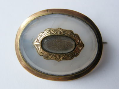 Title (ebay affiliate link): Antique-Victorian-Agate/Pinchbeck Mourning Brooch-Needs Attention-circa 1860's