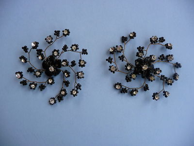 ANTIQUE ~ VINTAGE LARGE MADE IN W GERMANY BLACK & RHINESTONE CLIP ON EARRINGS