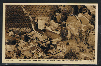 BRITISH POSTCARD - 12-011 B&W AERIAL OF ST. LEONARD.S TOWER, WEST MALLING