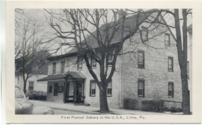 Title (ebay affiliate link): c1950 Car First Pretzel Bakery Building USA Roadside Baking LITITZ PA POSTCARD