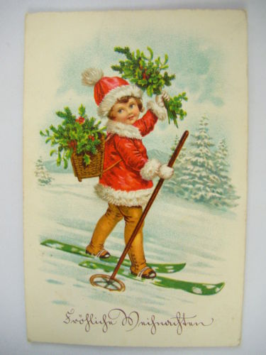 Title (ebay affiliate link): Vintage German Postcard - Christmas Weihnachten Girl on Skis