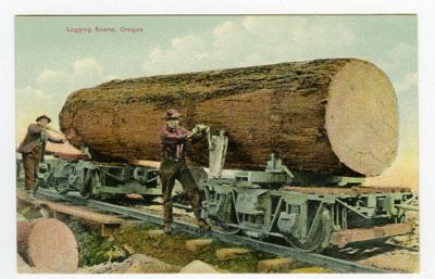 Title (ebay affiliate link): COLOR POSTCARD - OREGON Logging Scene - Railroad Disconnect Log Car & Crew - NBU