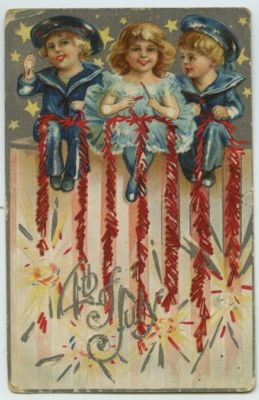 Title (ebay affiliate link): Vintage 1910 Embossed Patriotic July 4th Postcard Children & Fireworks