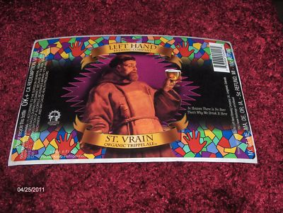 Title (ebay affiliate link): Beer label LEFT HAND brew ST.VRAIN ORGANIC TRIPPEL ALE