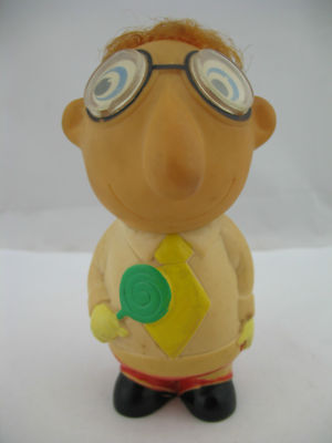 Title (ebay affiliate link): Plastic Squeeze Toy Doll: Nerd with Lollipop, eyes spin, Parksmith Japan 1969