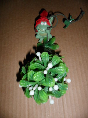 Title (ebay affiliate link): KISS A FROG PLASTIC HANING MISTLETOE CHRISTMAS ORNAMENT 1987 HALLMARK