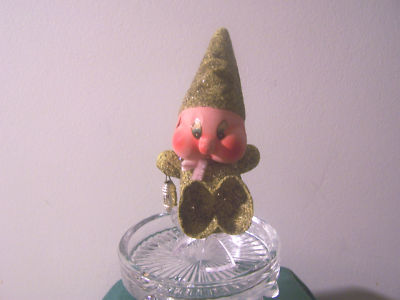 Title (ebay affiliate link): VINTAGE DWARF*ELF*MICA* GLITTER*CARDBOARD*PAPER MACHE CANDY CONTAINER ORNAMENT