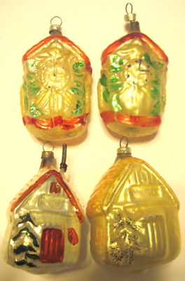 Title (ebay affiliate link): VINTAGE CHRISTMAS 4 GLASS HOUSE ORNAMENTS EXCELLENT EXCELLENT CONDITION