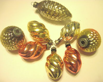 Title (ebay affiliate link): VINTAGE CHRISTMAS 8 GLASS ORNAMENTS - PINECONES, SWIRLS, DIMPLED BALLS