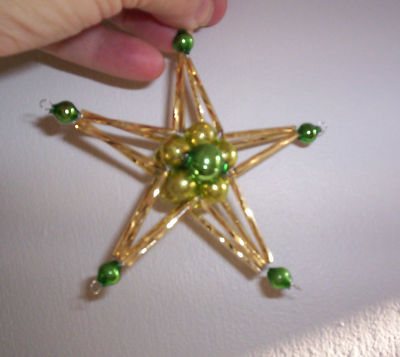 Title (ebay affiliate link): vintage mercury glass beaded STAR Christmas Ornament: GOLD, CHARTREUSE,DK. GREEN