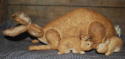 PRIMITIVE HANDMADE MAMA BUNNY AND BABIES **OLD TATTERED PRIMITIVES** PSAH