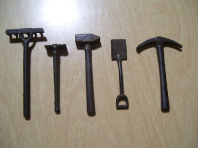 ANTIQUE Miniature Salesman Sample Cast Iron Farm Garden Tools Toy Axe, Rake etc
