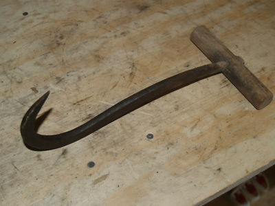 Title (ebay affiliate link): Primitive Antique HAY,COTTON HOOK, Metal Hook,Wood Handle VGC