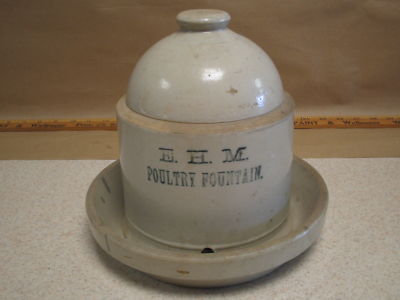 Title (ebay affiliate link): ANTIQUE 1/2 GAL. STONEWARE POULTRY CHICKEN FOUNTAIN WATERER