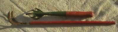 vintage garden tool hand claw rake cultivator x 2 wood handle red green