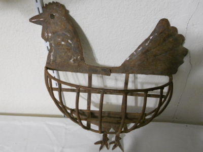 Title (ebay affiliate link): VINTAGE RUSTIC TIN FOLKART CHICKEN METAL BASKET ROOSTER HEN WALL HANGING