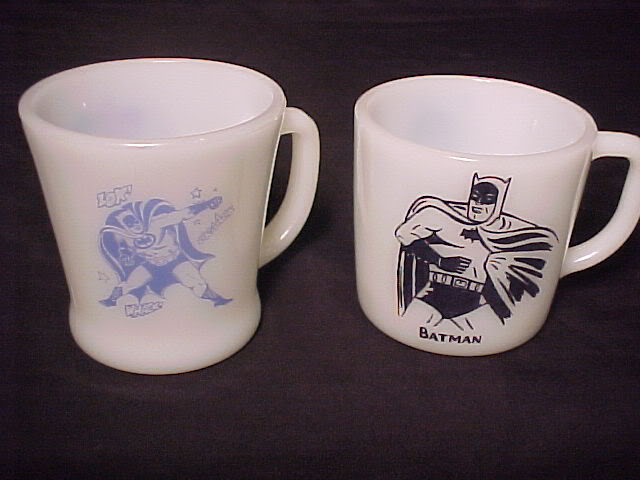 2 - 1966 BATMAN Milk Glass Mugs FIRE KING Westfied NICE