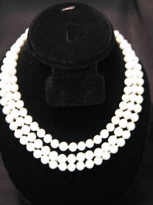 VINTAGE TRIPLE STRAND MILK GLASS BEAD NECKLACE~JAPAN