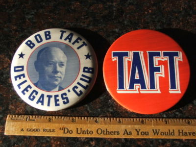 Title (ebay affiliate link): 2 Large 4" BOB TAFT Political GOP Ohio SENATOR Pinback Buttons