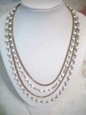 Vintage Milk Glass Beaded Chains Necklace JAPAN ...WOW