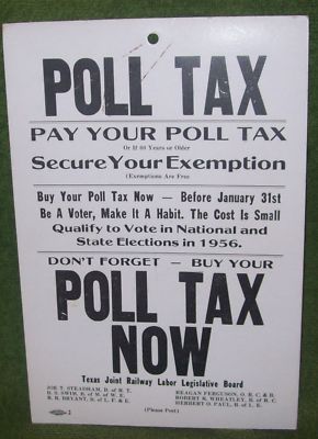 Vintage 1956 Texas Poll Tax Placard