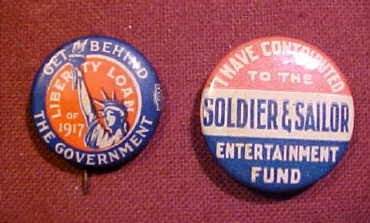 LIBERTY LOAN 1917 SOLDIER & SAILOR WWII FUND PIN BACK LOT