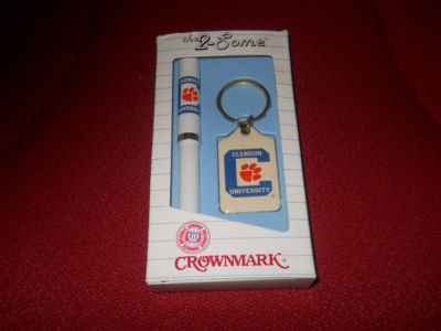 VINTAGE? CLEMSON TIGERS PEN AND KEY CHAIN SET WITH ENAMEL HEYCHAIN PEN WORKS
