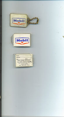 3 VINTAGE MOBIL GAS STATION KEY CHAINS MOBILGAS FLYING HORSE PARTS REPAIR