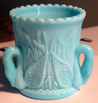 Blue Three Swan Milk Glass Toothpick Holder