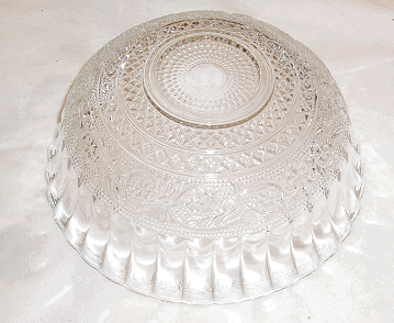 Title (ebay affiliate link): Vintage Sandwich Glass clear Serving Bowl Diamond and Floral Design VERY NICE