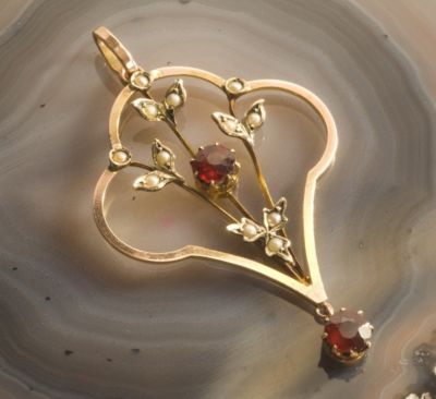 Title (ebay affiliate link): A FANTASTIC ANTIQUE 9ct SOLID ROSE GOLD NATURAL GARNET & PEARL PENDANT