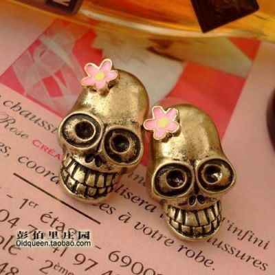 Title (ebay affiliate link): Antique Bronze Skull Pink Flower Punk Earrings Z325