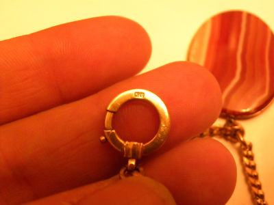 Antique K20 Hallmarked Gold Tone Chain Agate Watch Fob Edwardian 11.6g