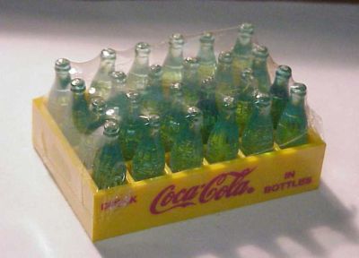 Title (ebay affiliate link): Coca Cola Coke 24 Mini Miniature Plastic Bottles & Case Carrier Holder YELLOW