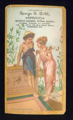 TC102, George C Cribb, Carriages, Milwaukee Wis, girls with birds, trade card