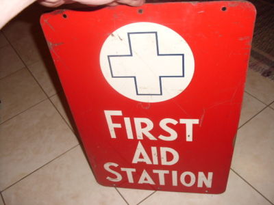 Title (ebay affiliate link): NICE ORIGINAL VINTAGE FIRST AID METAL SIGN GAS STATION ADVERTISEMENT DISPLAY NR