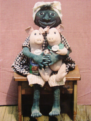 Title (ebay affiliate link): Primitive Black Folkart Boy with His Cute Little Pork N Beans Piggies Pattern