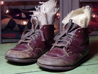 Title (ebay affiliate link): OMG! So Primitive Vintage RED GOOSE Childs Brown Leather Hi-Top Shoes w/Burlap
