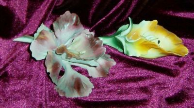 Title (ebay affiliate link): 2x Vintage Flowers Porcelain Roses Lily & Orchid Could be CAPODIMONTE