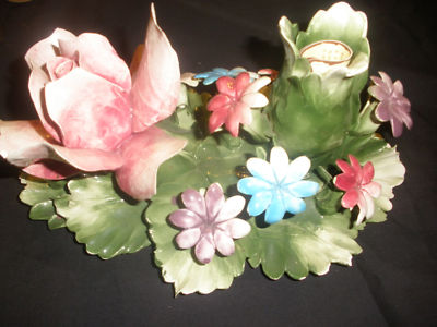 CAPODIMONTE ROSE CANDLE HOLDER CENTERPIECE
