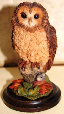 Title (ebay affiliate link): COUNTRY ARTISTS TAWNY OWL BIRD FIGURE ON A WOODEN BASE WITH MOUSE LEAVES