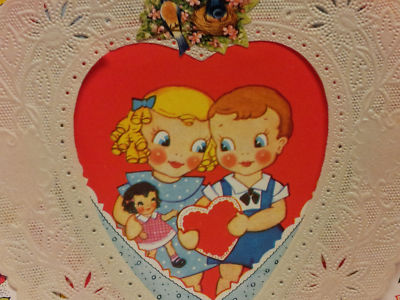 Title (ebay affiliate link): Vintage VALENTINE GREETING CARD PAPER LACE LARGE SIZE BOY GIRL DOLL BLUEBIRDS
