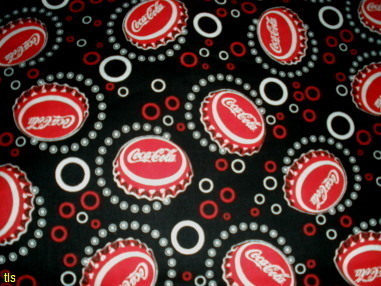 Title (ebay affiliate link): Coca Cola Coke soda pop bubbly caps fabric