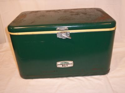 Title (ebay affiliate link): VINTAGE THERMOS METAL COOLER, ICE CHEST, GREEN